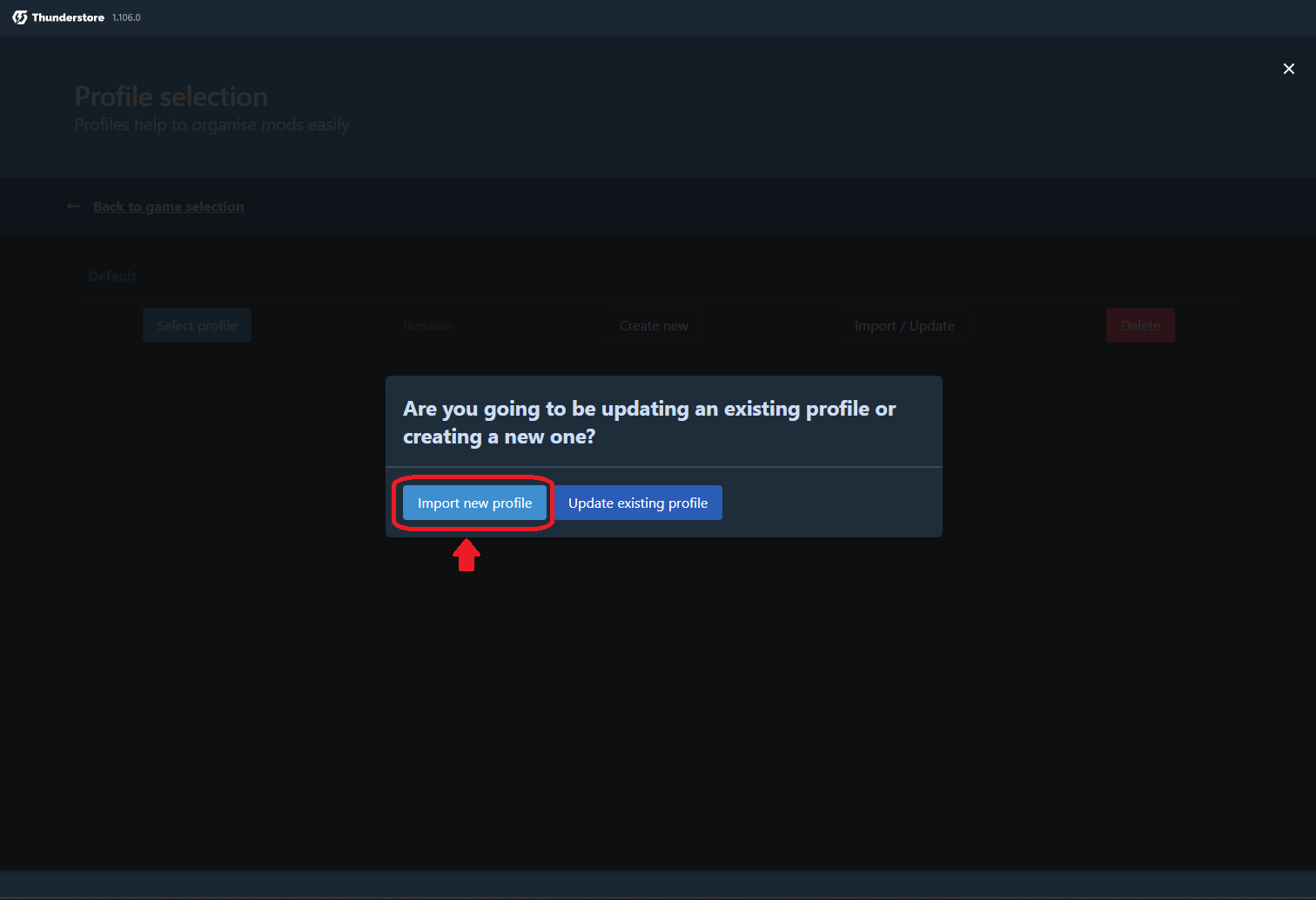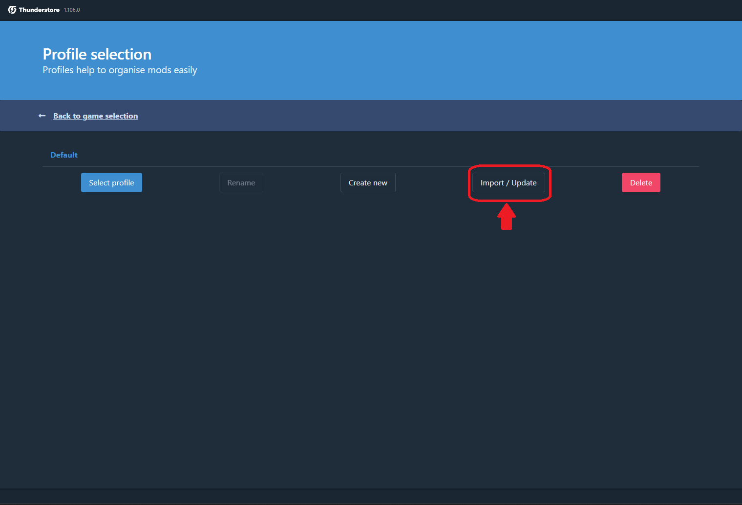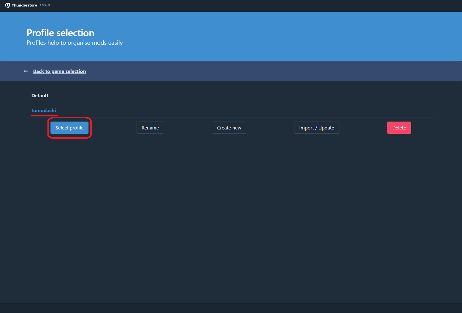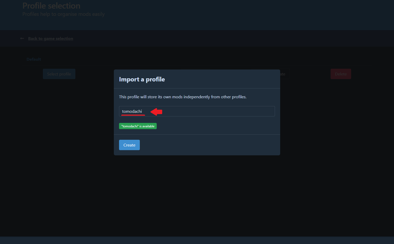 新しくMODリストを作成したいときは「Create new」で新しいプロファイルを作成できます。 -
