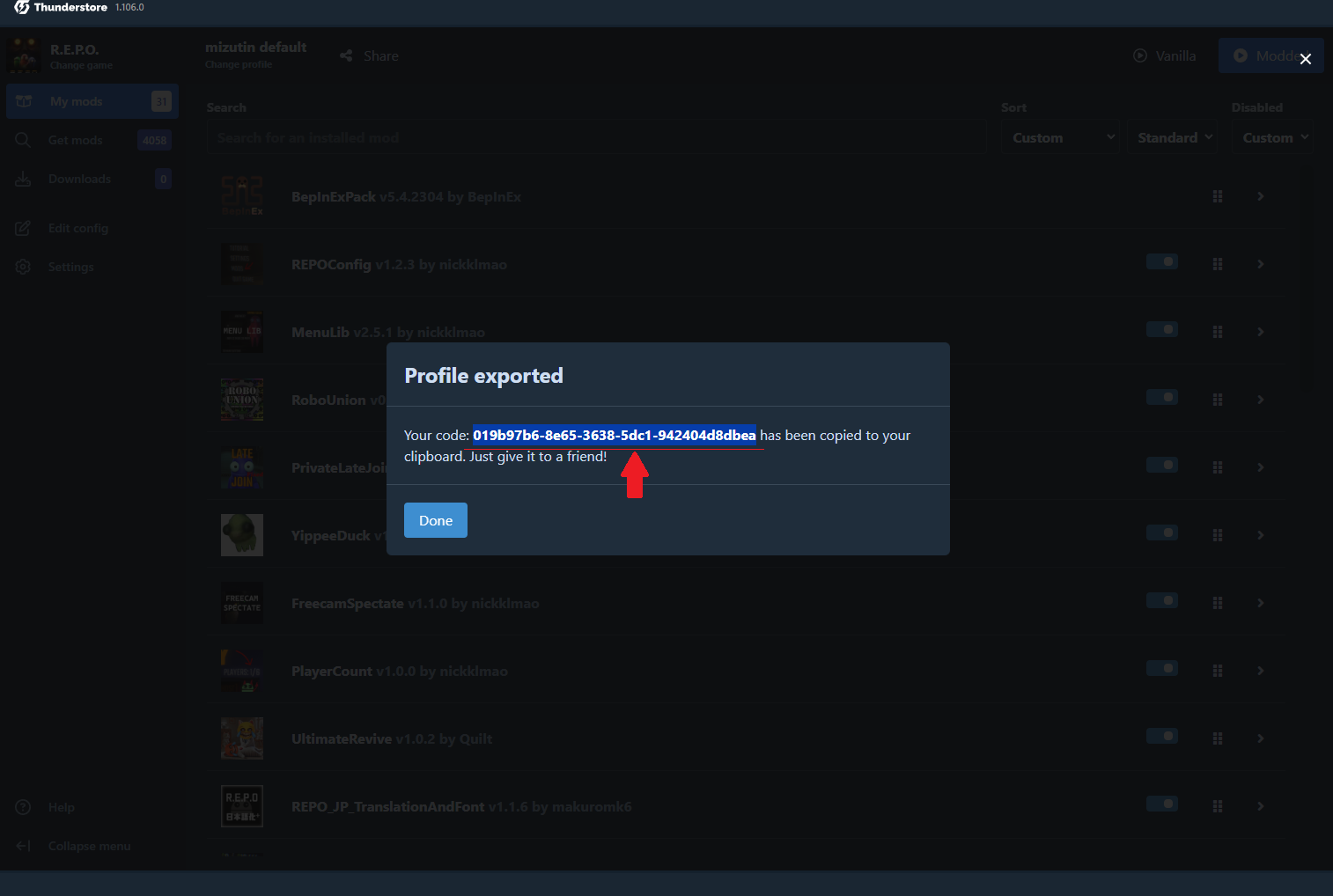 MODを入れてゲームを起動したら、私が貼るルームIDをコピーしてください。