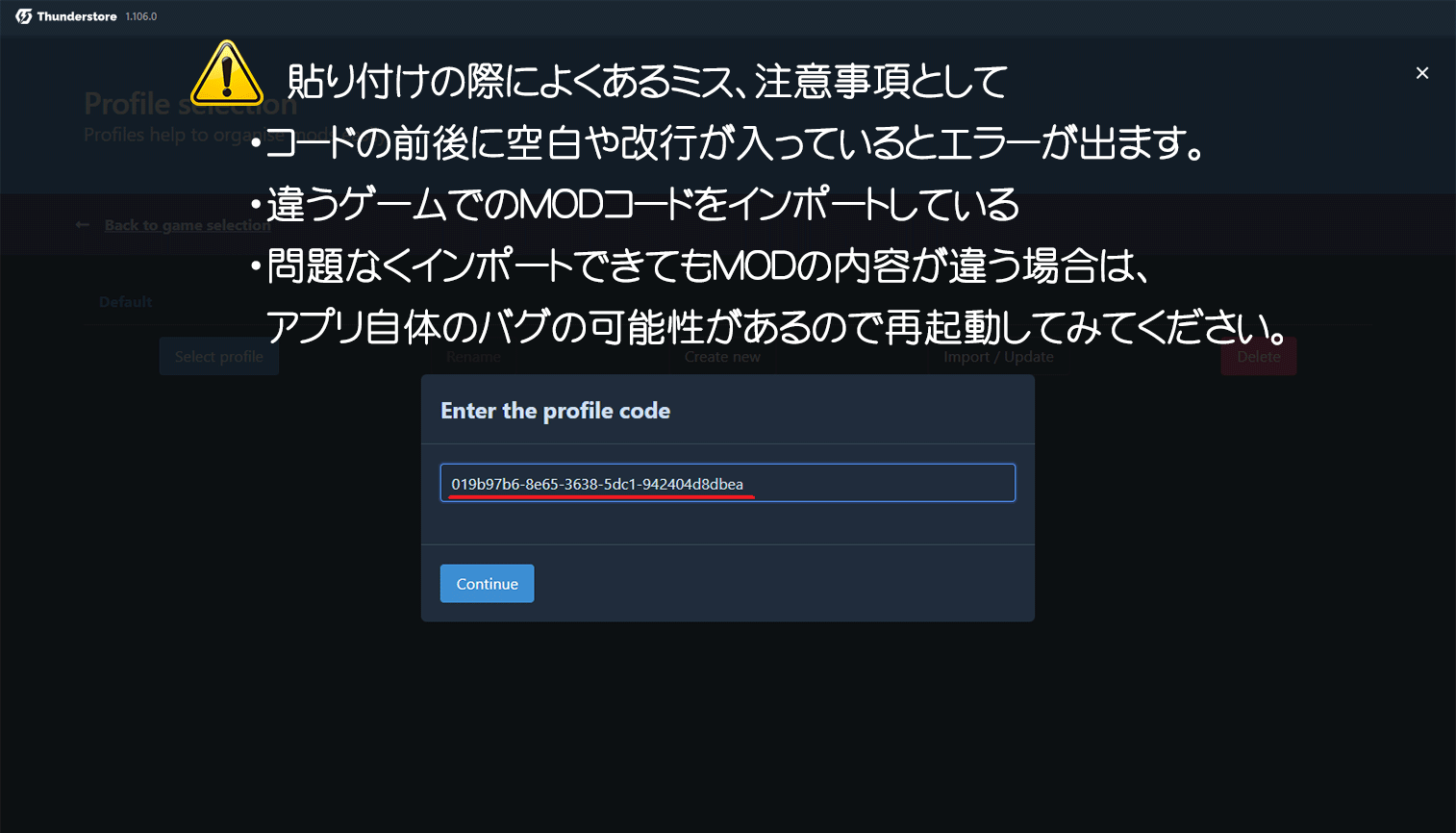 Manager(サンダーストア・モッド・マネージャー)の導入方法と簡単な使い方をまとめました。